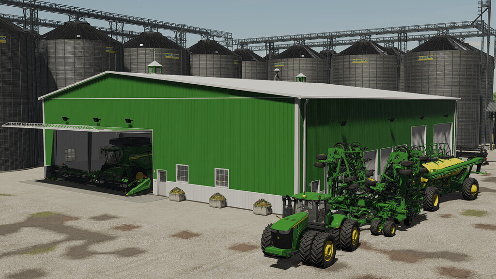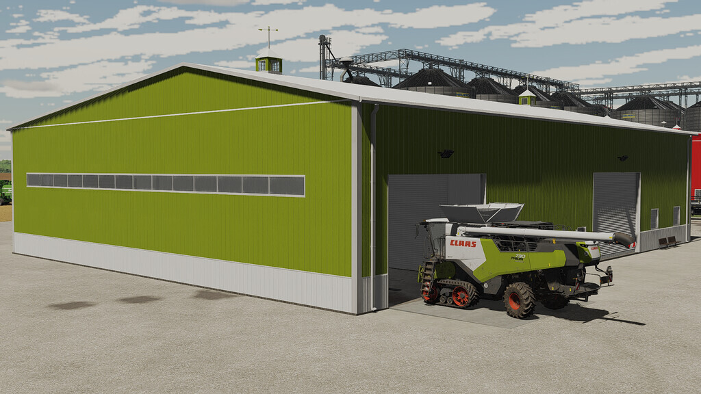 Here You can store grains, pallets and vehicles and them repair it. It has full lightning inside and outside manual