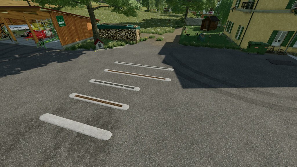 This is a “paintable” curbstone for the build mode (is painted like a fence). In addition, there are two different water gutters in 4m and 6m length.
