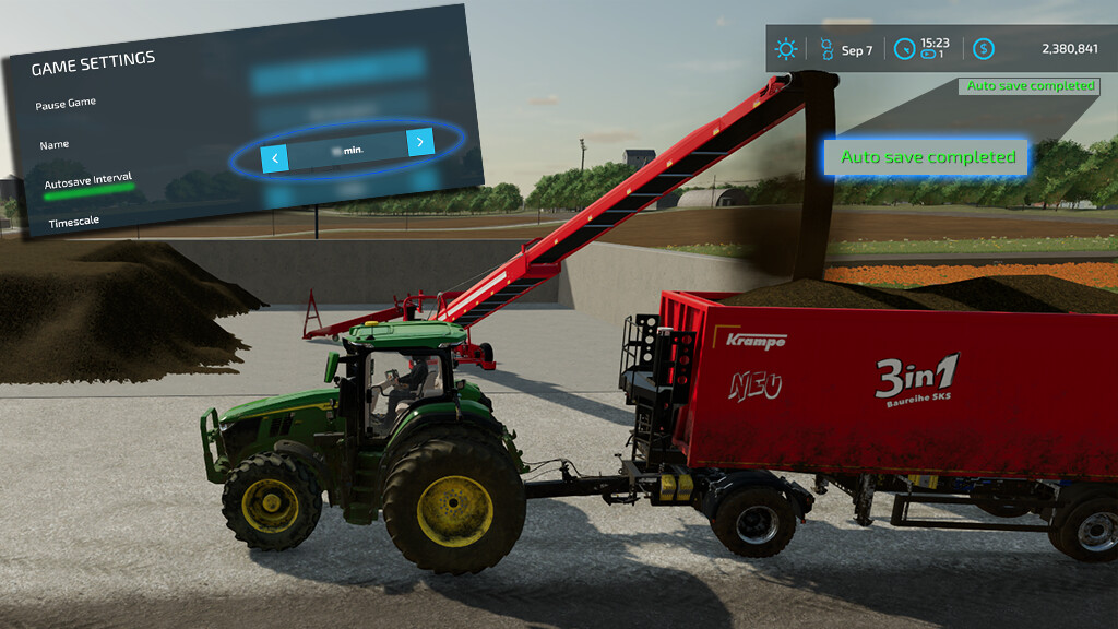 Autosaves without opening the menu (while you play) at the in game set interval.
