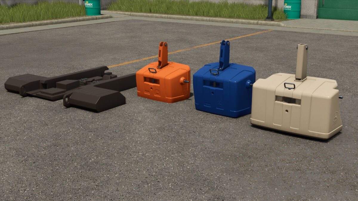 The John Deere Weights Pack v 1.0.0.2 introduces a variety of weights designed for use with John Deere tractors in Farming Simulator. This pack includes weights available in a range of colors, allowing for customization to match your equipment. In this version, the repair interval for the weights has been extended, reducing the frequency of necessary maintenance. This pack is a useful addition for players looking to enhance their farming experience with visually appealing and functional equipment.
