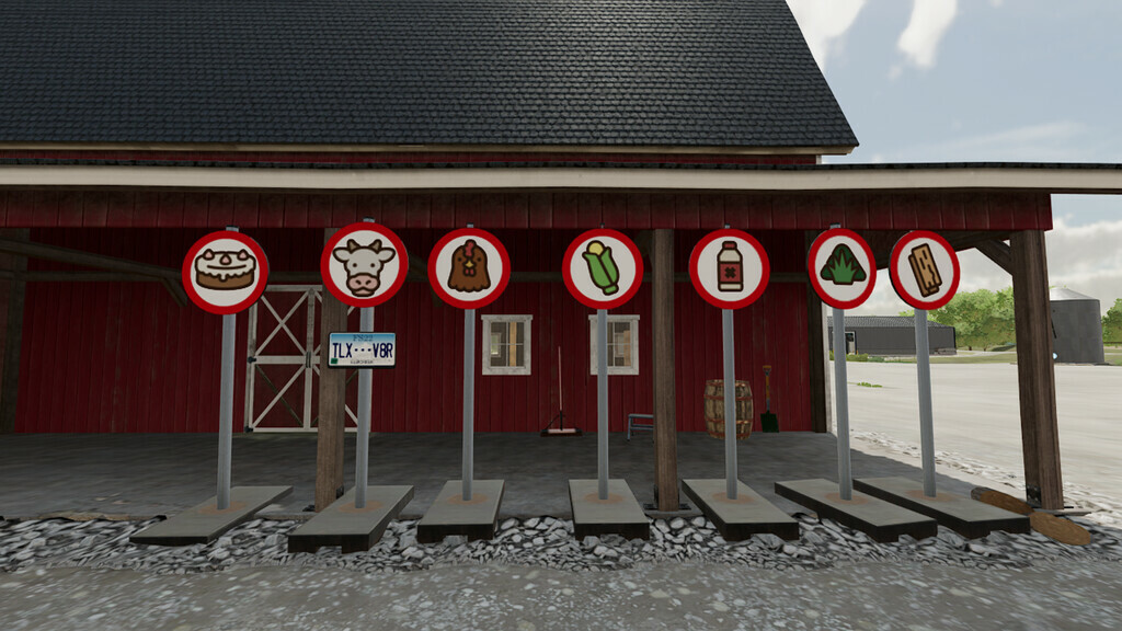 Multiple icons in one placeable sign for organizing your farm. Added second weight for stability, when sign is in final position, just grab a portable tool box (console or PC) or use the mobile workshop (PC) to access the customization menu. Added license plate to mark where a vehicle or implement is parked.