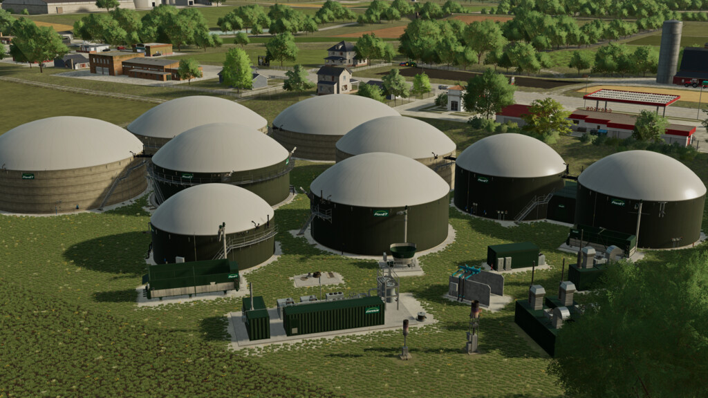 You will have 3 bunkers, 8 digesters, 2 methane flares, 4 generators, 1 separator and 1 slurry/digestate storage available in this pack.