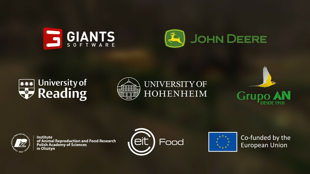 The Precision Farming Free DLC is a project initiated by John Deere in Germany and funded by EIT Food, Europe’s leading Food Innovation Initiative. Co-funded by the EU, it is meant to highlight sustainable technology in agriculture in collaboration with Institute of Animal Reproduction and Food Research of Polish Academy of Sciences, Grupo AN in Spain and the universities of Hohenheim (Germany) and the University of Reading (UK).