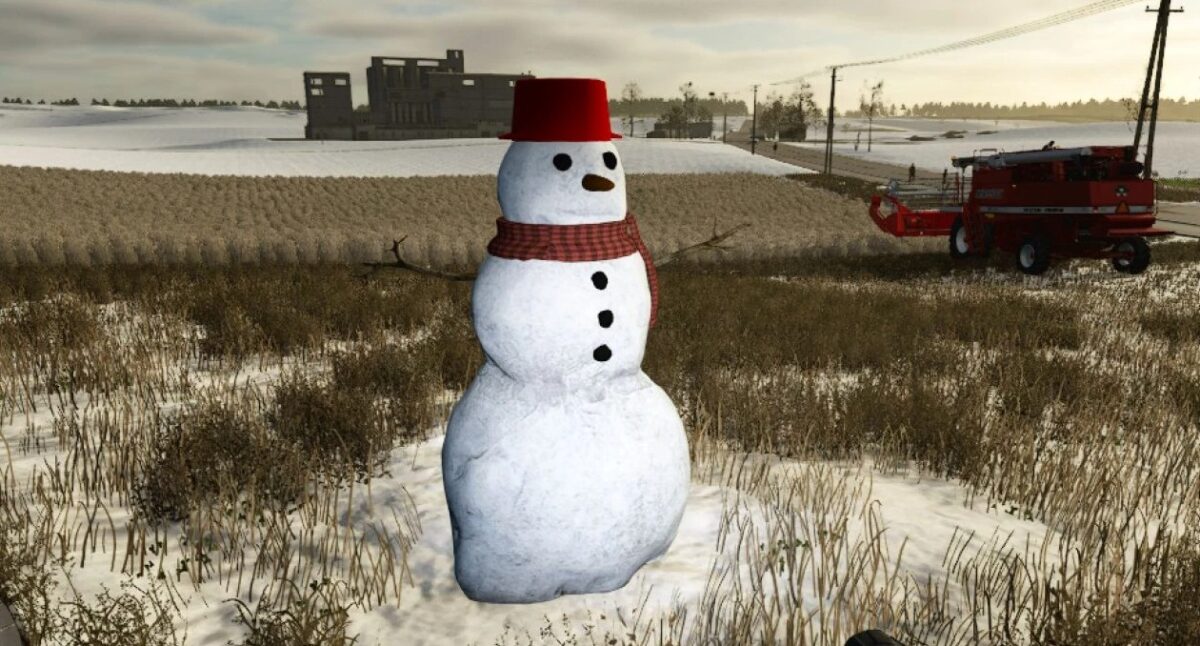 Decoration Snowman for winter, as a placeable object in the Farming Simulator 25 game.
