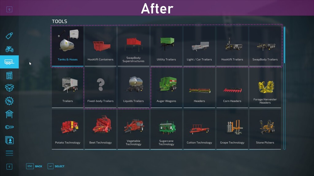 – Adds additional categories for specialized equipment and buildings such as utility vehicles, excavators, snow removal, factories, bale storage etc