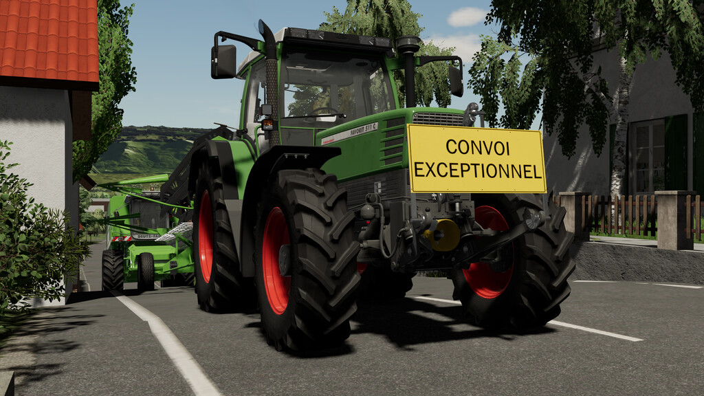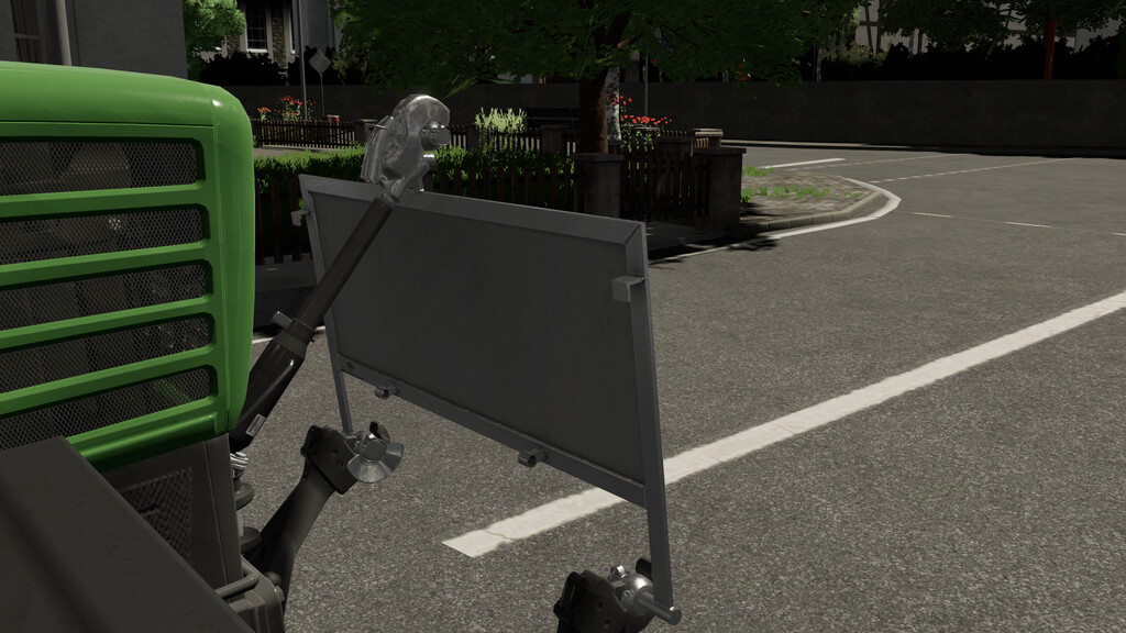 This front shield can be mounted on tractors. It is used to warn of extra-wide vehicles such as combine harvesters or forage harvesters and is mounted on the front hydraulic.