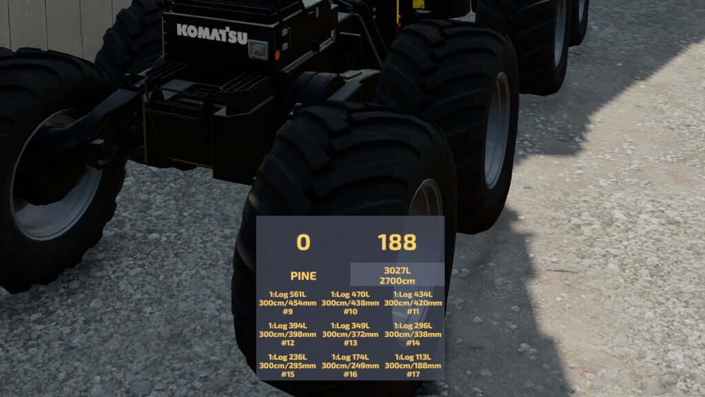 Wood harvester addon to measure count and volume of cutted splits.
